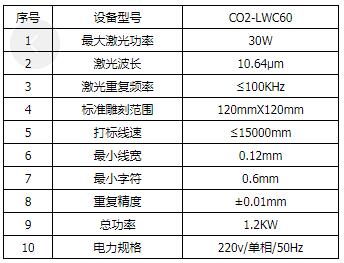 序號 設(shè)備型號 CO2-LWC60