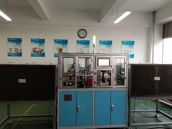 3、自動(dòng)組裝:待組裝區(qū)域內(nèi)的(上、下)卡蓋以及芯條由相應(yīng)的機(jī)械手分別自動(dòng)抓取至特定的位置并扣緊進(jìn)而組裝為成品;