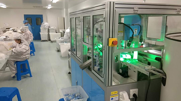 1、自動(dòng)上料(上蓋、下蓋):將物料大批量?jī)A倒于儲(chǔ)料倉(cāng)內(nèi),待機(jī)器開(kāi)始運(yùn)行,(上、下)卡蓋由送料器送至待組裝區(qū)域,等待下一工序。并附有自動(dòng)檢測(cè)功能以保證(上、下)卡蓋前后順序的一致性;